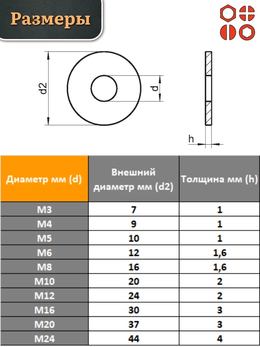 | Шайба полиамидная М16 DIN125 (пластик), 20 шт. | 2000000608396ф20 | 1 шт. |