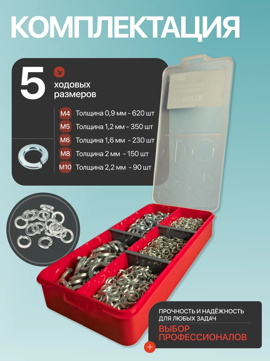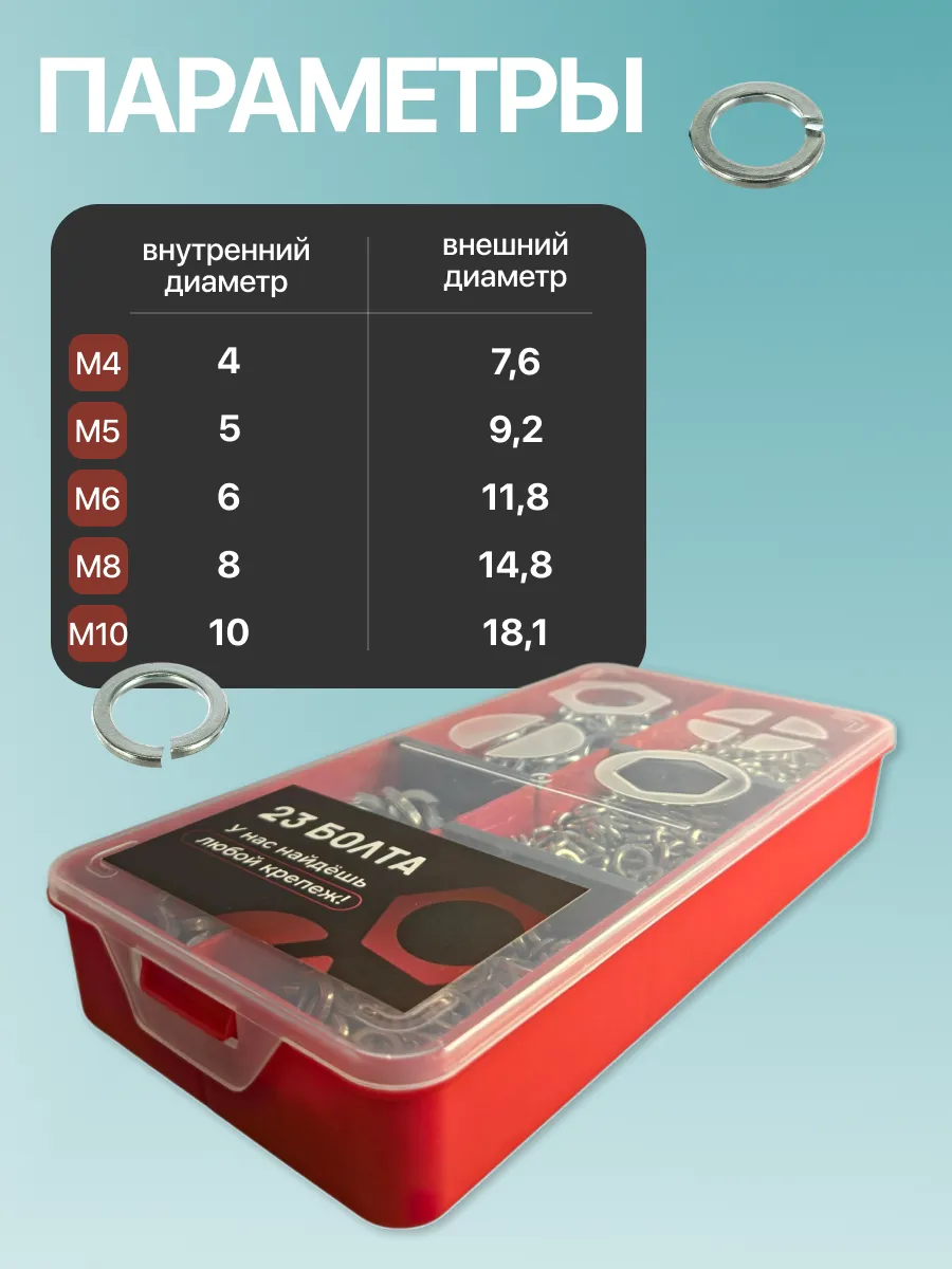 Шайбы гровер пружинные ОЦ М4,5,6,8,10 органайзер НАБОР 1
