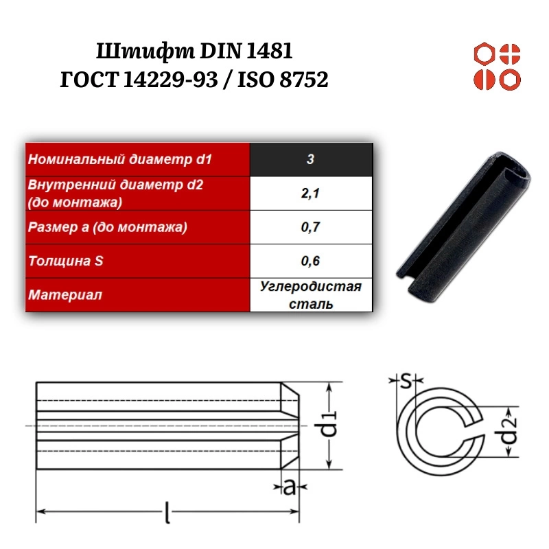 Штифт пружинный DIN 1481 3х12 / ГОСТ 14229-93 / ISO 8752, 1000 шт.