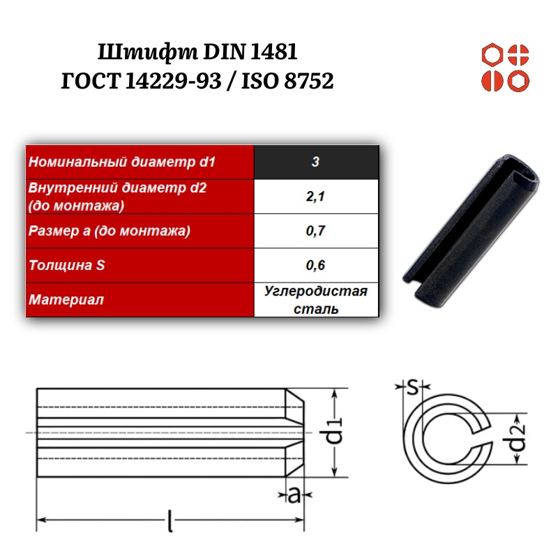Штифт пружинный DIN 1481 3х30 / ГОСТ 14229-93 / ISO 8752, 1000 шт.