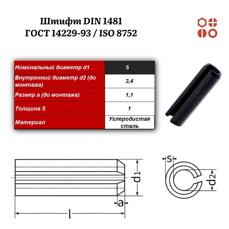 Штифт пружинный DIN 1481 5х35 / ГОСТ 14229-93 / ISO 8752, 1500 шт.