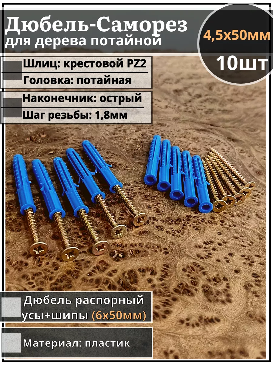 | Шуруп саморез 4,5х50 мм ЖЦ с дюбелем 6х50, 50 шт. | AB7104505060N0Ф/B23300605006000ф50 | 1 шт. |