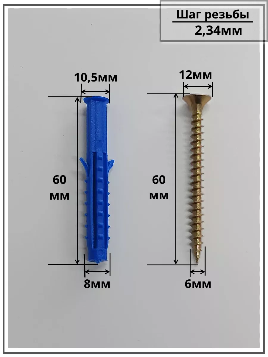 | Шуруп саморез 6х60 мм ЖЦ с дюбелем 8х60, 10 шт. | B04006006062G07/B23300806003100ф10 | 1 шт. |