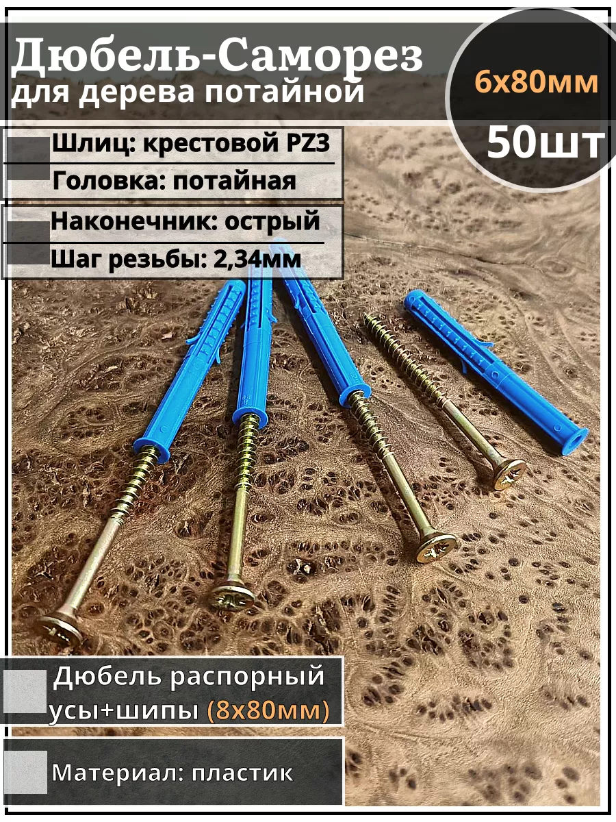 | Шуруп саморез 6х80 мм ЖЦ с дюбелем 8х80, 50 шт. | AB7106008065G07/B23300808003100ф50 | 1 шт. |