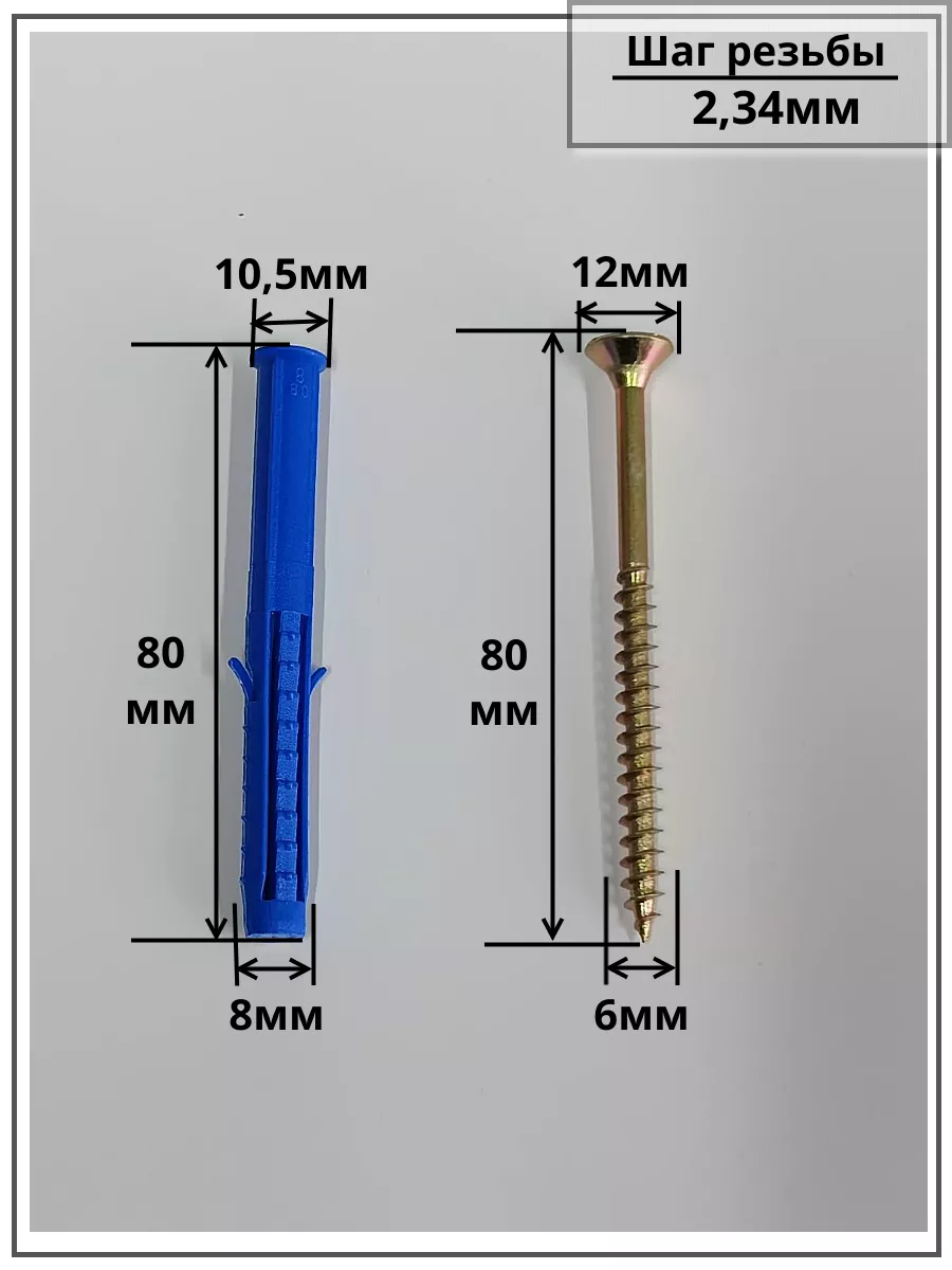 | Шуруп саморез 6х80 мм ЖЦ с дюбелем 8х80, 20 шт. | AB7106008065G07/B23300808003100ф20 | 1 шт. |