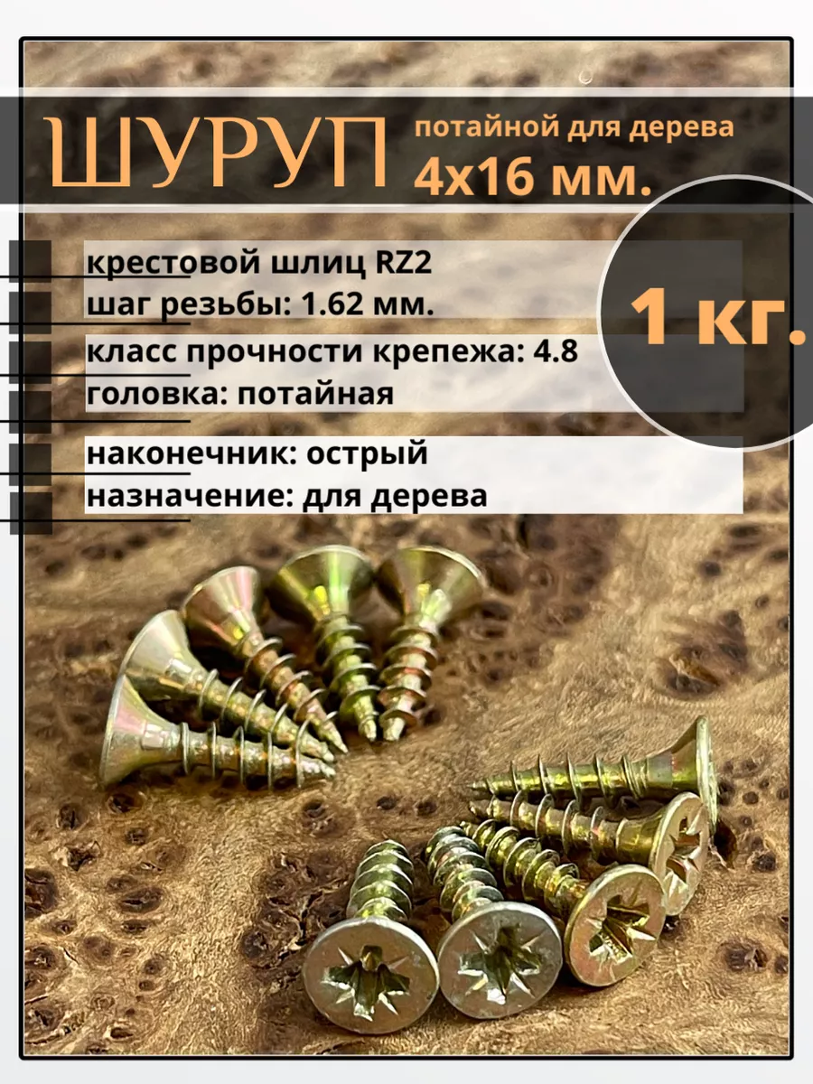 | Шуруп саморез потайной для дерева 4х16 ЖЦ, 0,5 кг. | B0400400166100Фг500 | 1 шт. |