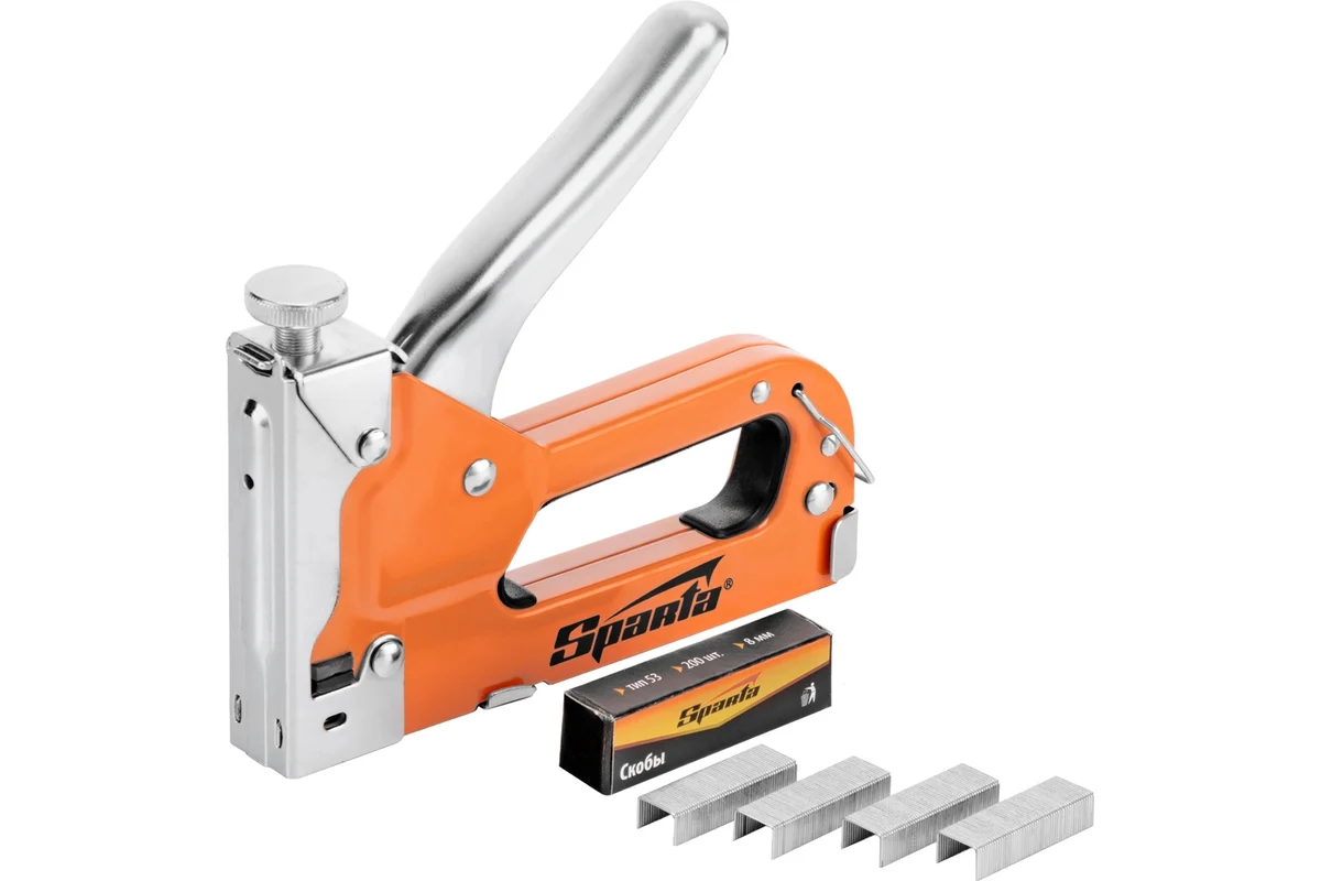 Степлер мебельный регулируемый со скобами 200 шт, тип скобы 53, 4-14 мм Sparta