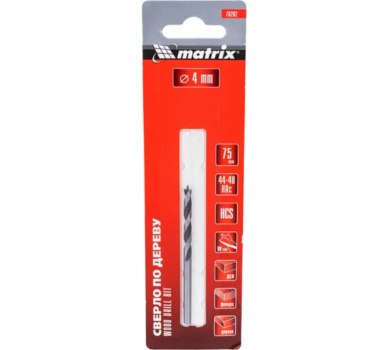 | Сверло по дереву, цилиндр.хвостовик 4х75 мм Matrix | 70202 | 1 шт. |