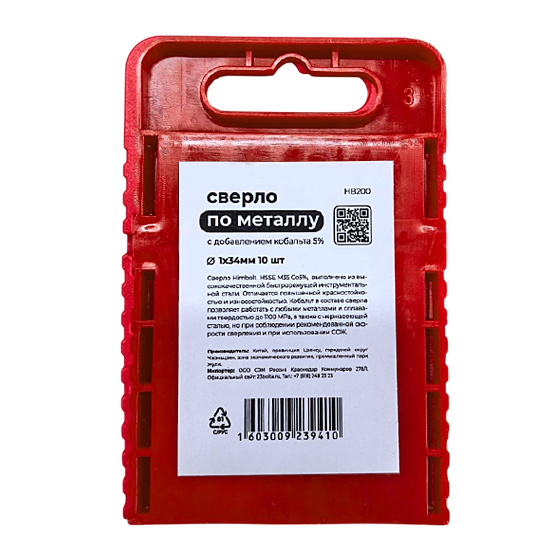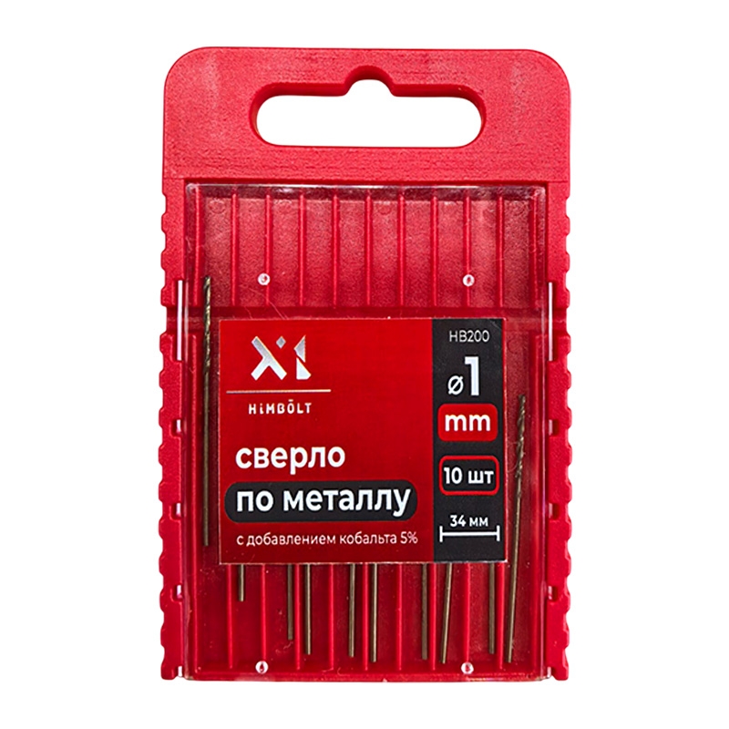 Сверло по металлу с кобальтом 5% P6M5K5 1,0 мм HIMBOLT 10 шт.пластиковый бокс