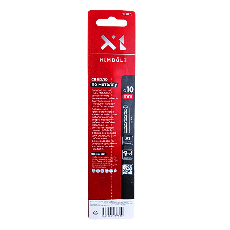 Сверло по металлу с кобальтом 5% P6M5K5 10,0 мм HIMBOLT 1 шт.блистер