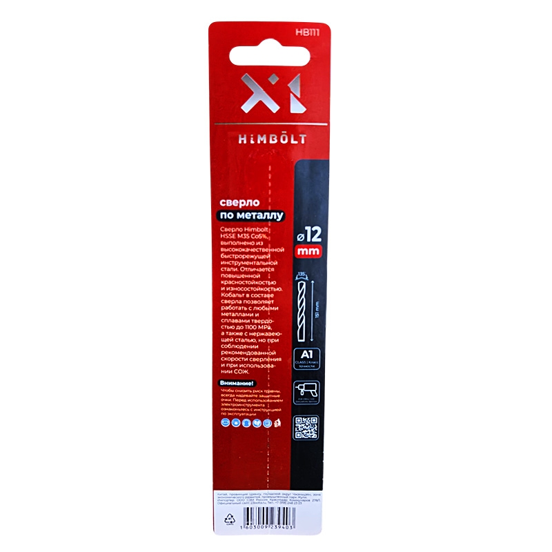 Сверло по металлу с кобальтом 5% P6M5K5 12,0 мм HIMBOLT 1 шт.блистер