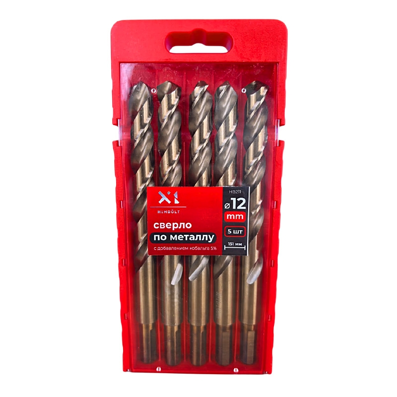 Сверло по металлу с кобальтом 5% P6M5K5 12,0 мм HIMBOLT 5 шт.пластиковый бокс