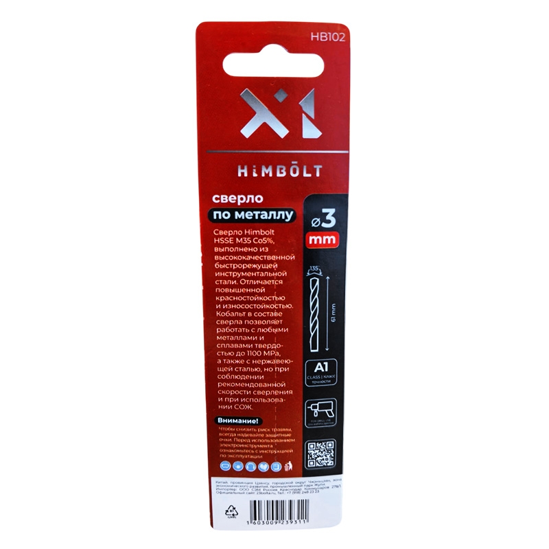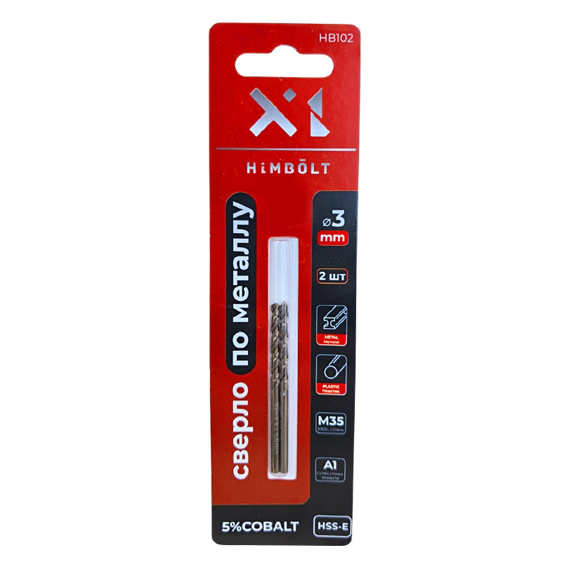 Сверло по металлу с кобальтом 5% P6M5K5 3,0 мм HIMBOLT 2 шт.блистер
