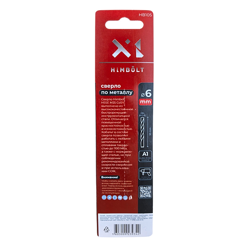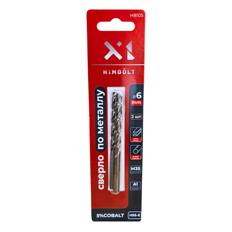 Сверло по металлу с кобальтом 5% P6M5K5 6,0 мм HIMBOLT 2 шт.блистер