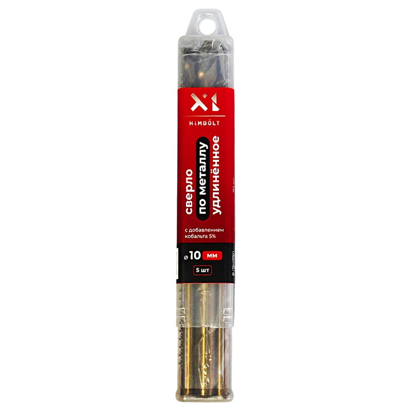 Сверло по металлу с кобальтом 5% P6M5K5 удлиненное 10,0 мм HIMBOLT 5 шт.пластиковый бокс