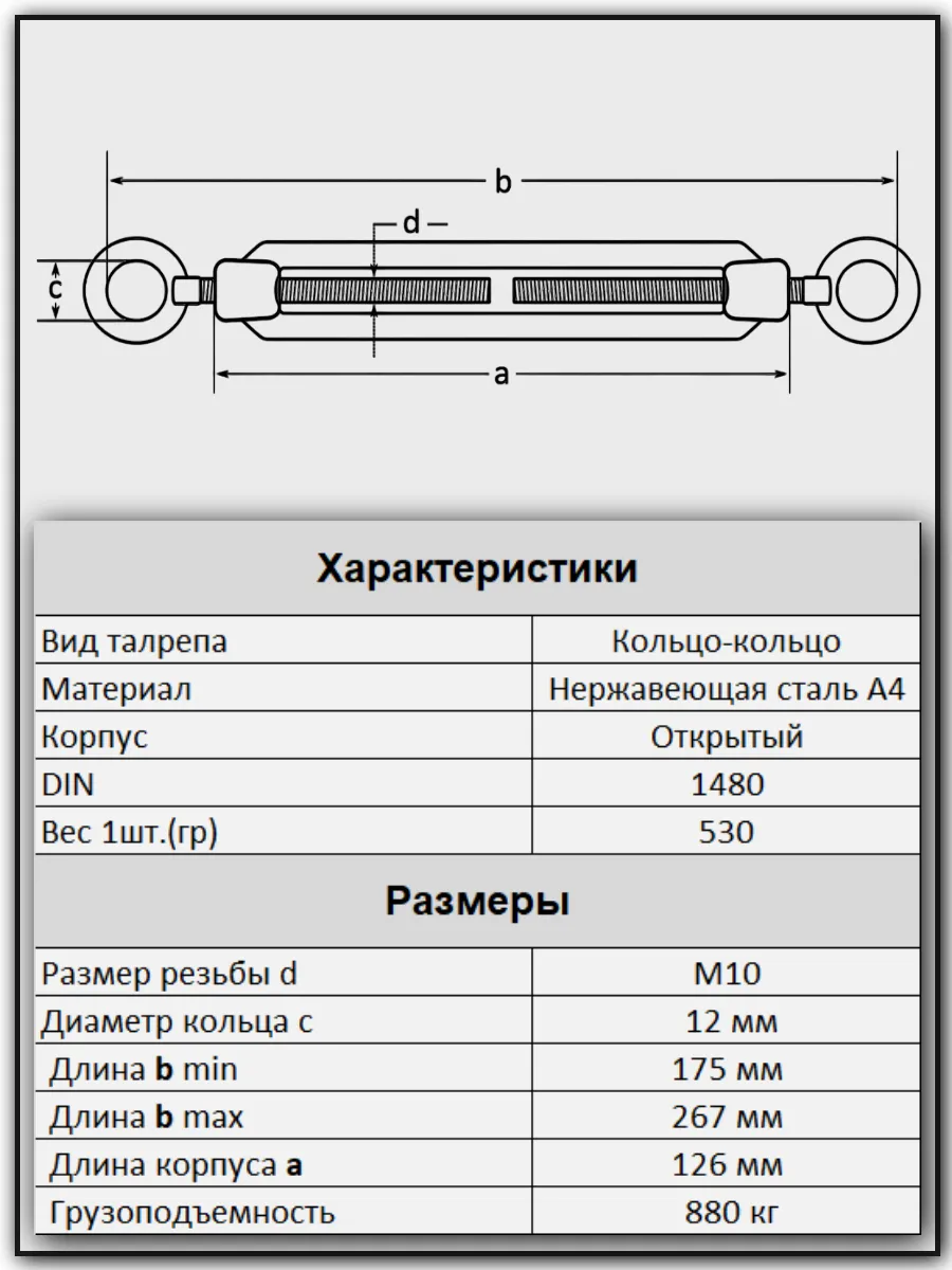 | Талреп кольцо-кольцо нержавеющий А4 М10 DIN1480, 2 шт. | A4BJ51000091A07ф2 | 1 шт. |