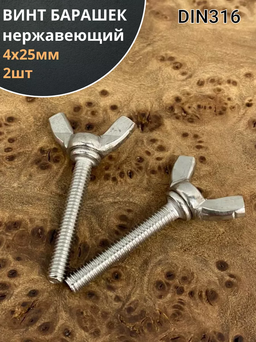 | Винт-барашек М4х25 мм , нержавеющая сталь DIN 316 (2 шт.) | вб425 | 1 шт. |