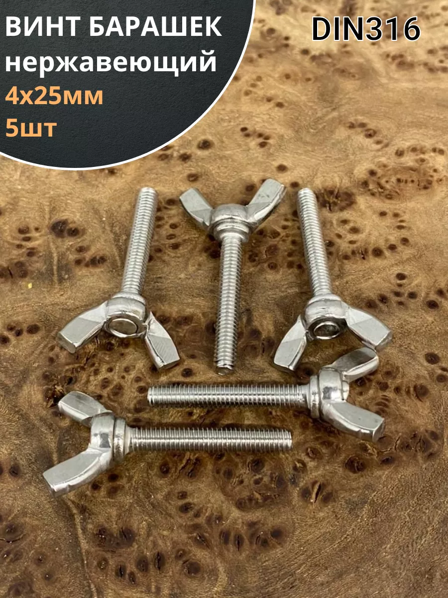 | Винт-барашек М4х25 мм , нержавеющая сталь DIN 316 (5 шт.) | вб425ф5 | 1 шт. |