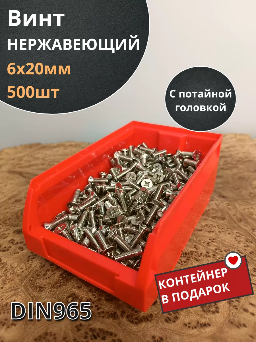 Винт нержавеющий 6х20мм DIN965 потайной (500шт) в контейнере