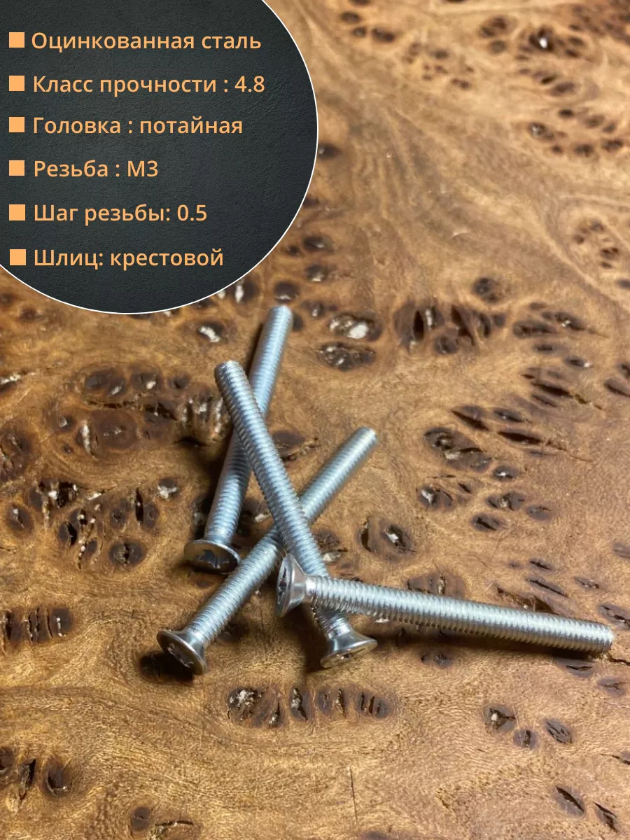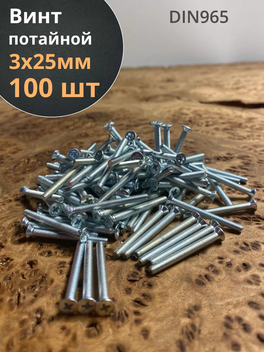 | Винт потайной оцинкованный 3х25 DIN965, 100 шт. | 22047 | 1 шт. |