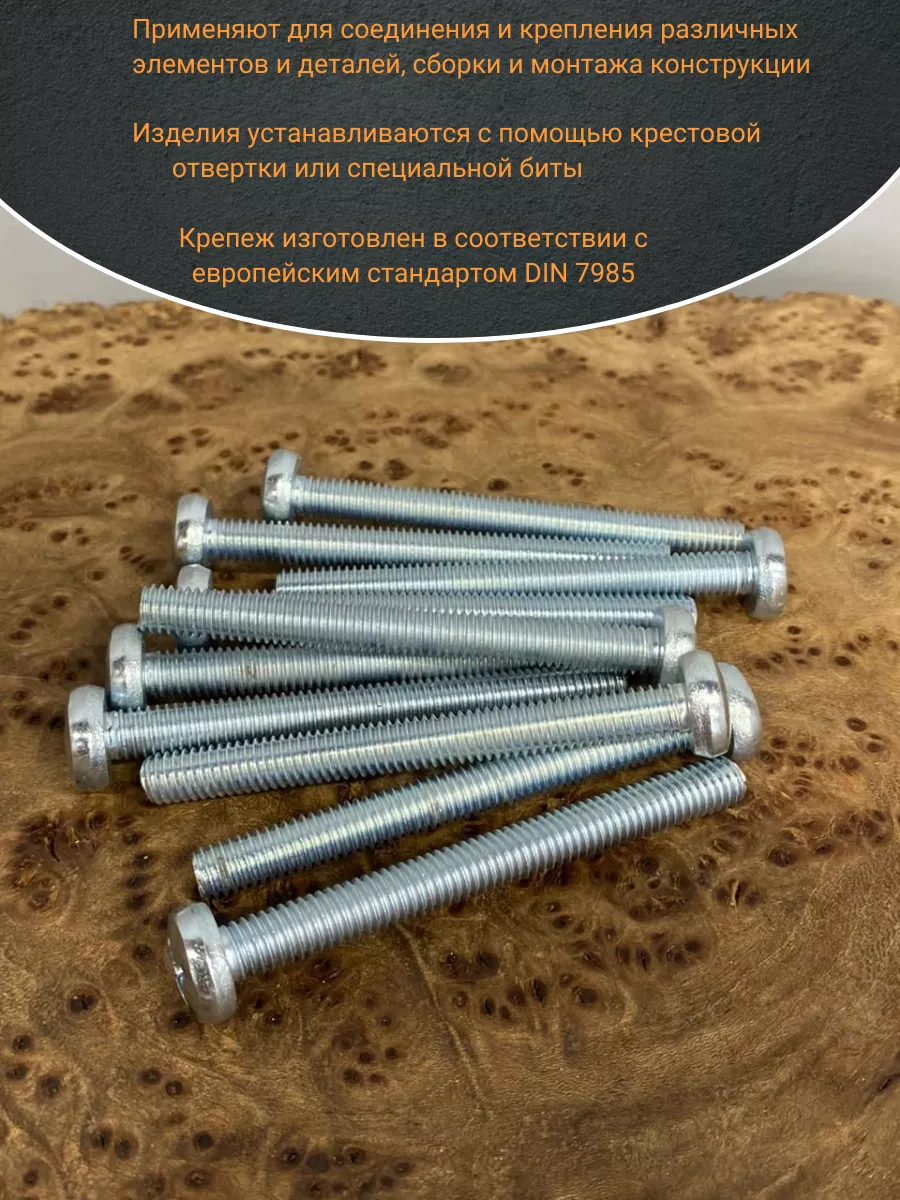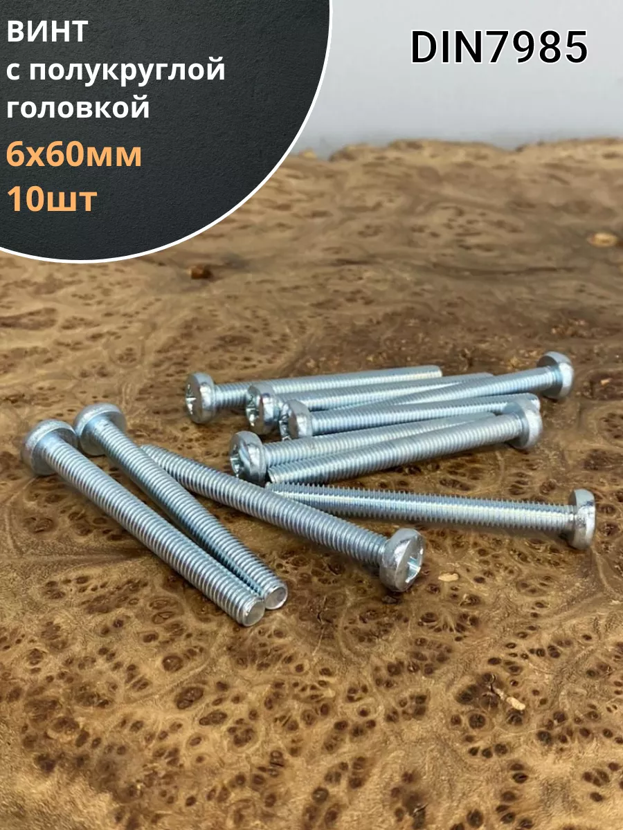 Винт с полукруглой головкой М6х60 ОЦ DIN7985, 10 шт.
