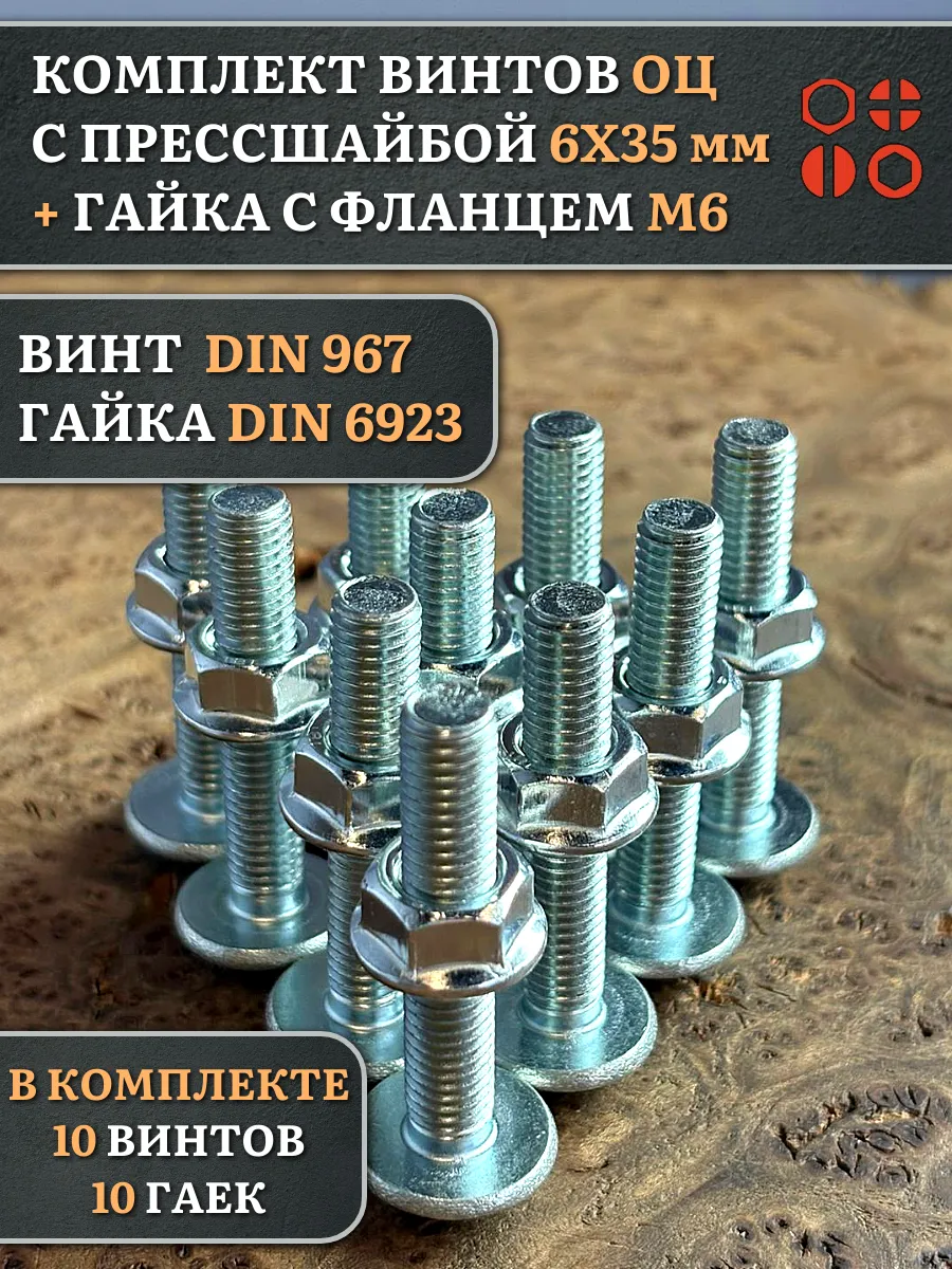 Винт с прессшайбой М6х35 DIN967 с гайкой фланец, 10 шт.
