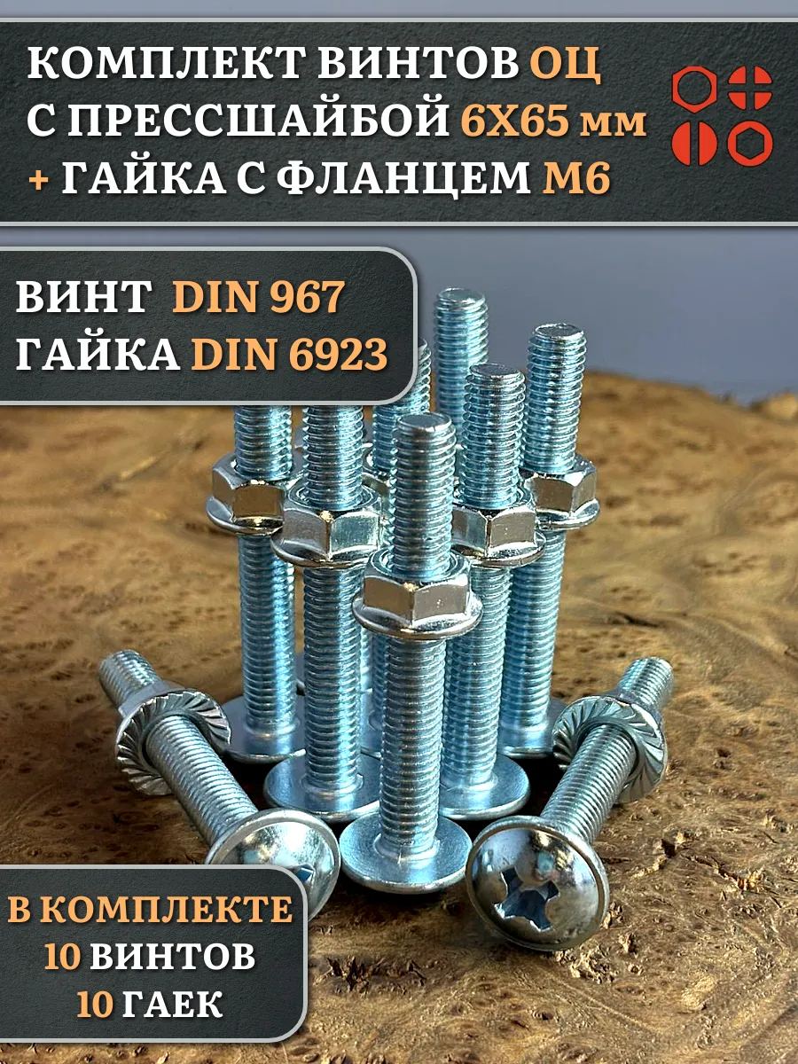 Винт с прессшайбой М6х65 DIN967 с гайкой фланец, 10 шт.