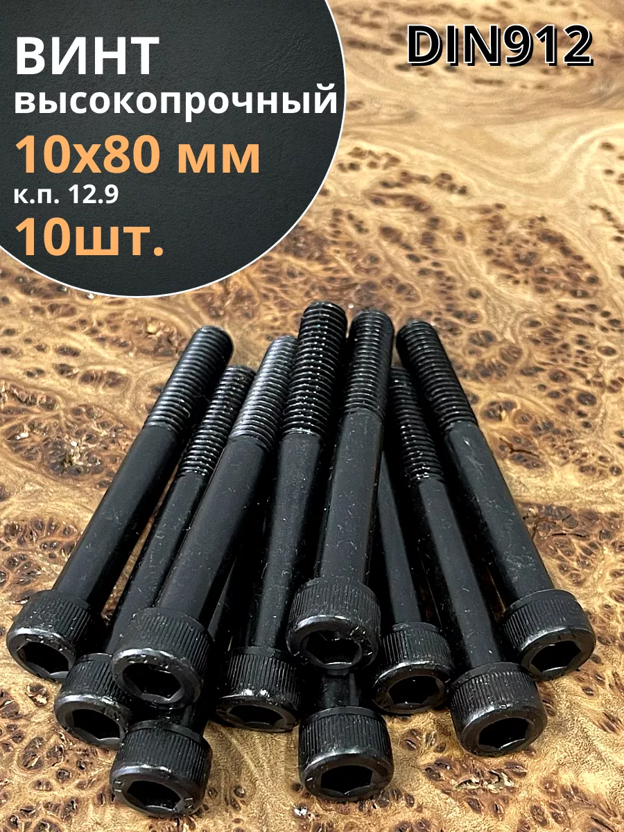 Винт высокопрочный НР М10х80 мм к.п.12.9 черный DIN912, 10 шт.