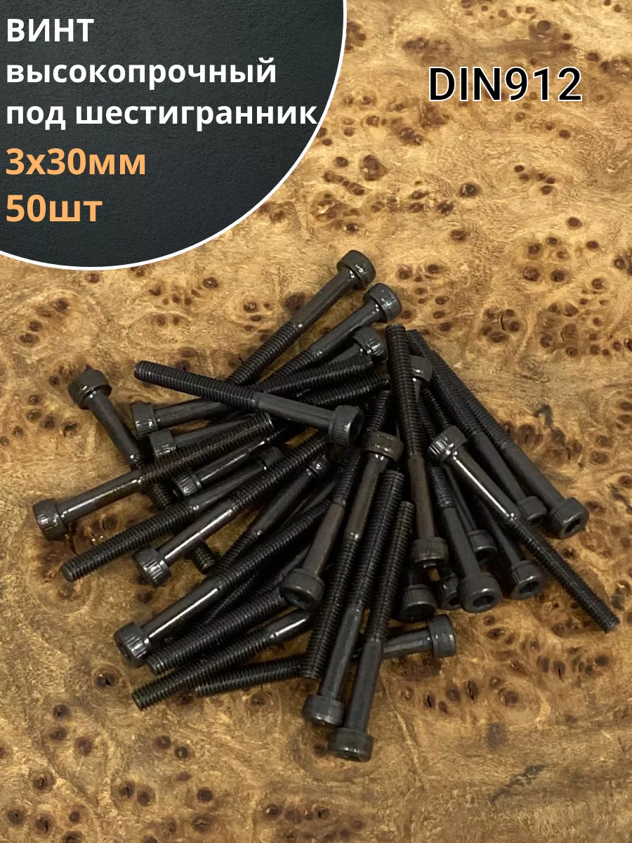 | Винт высокопрочный НР М3х30 мм к.п.12.9 черный DIN912, 50 шт. | УТ000003816 | 1 шт. |