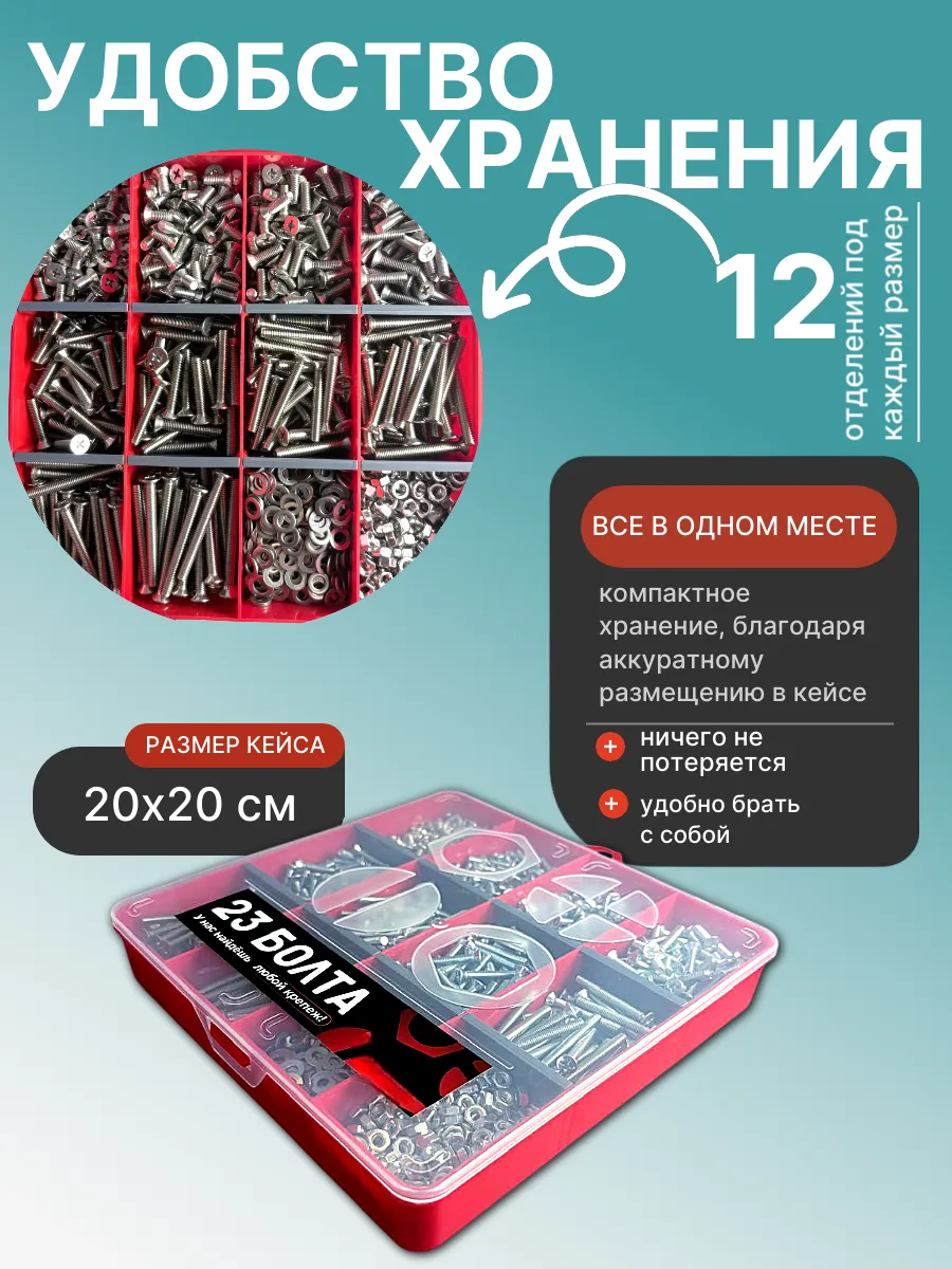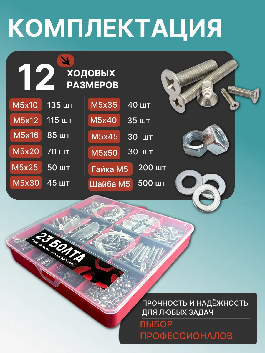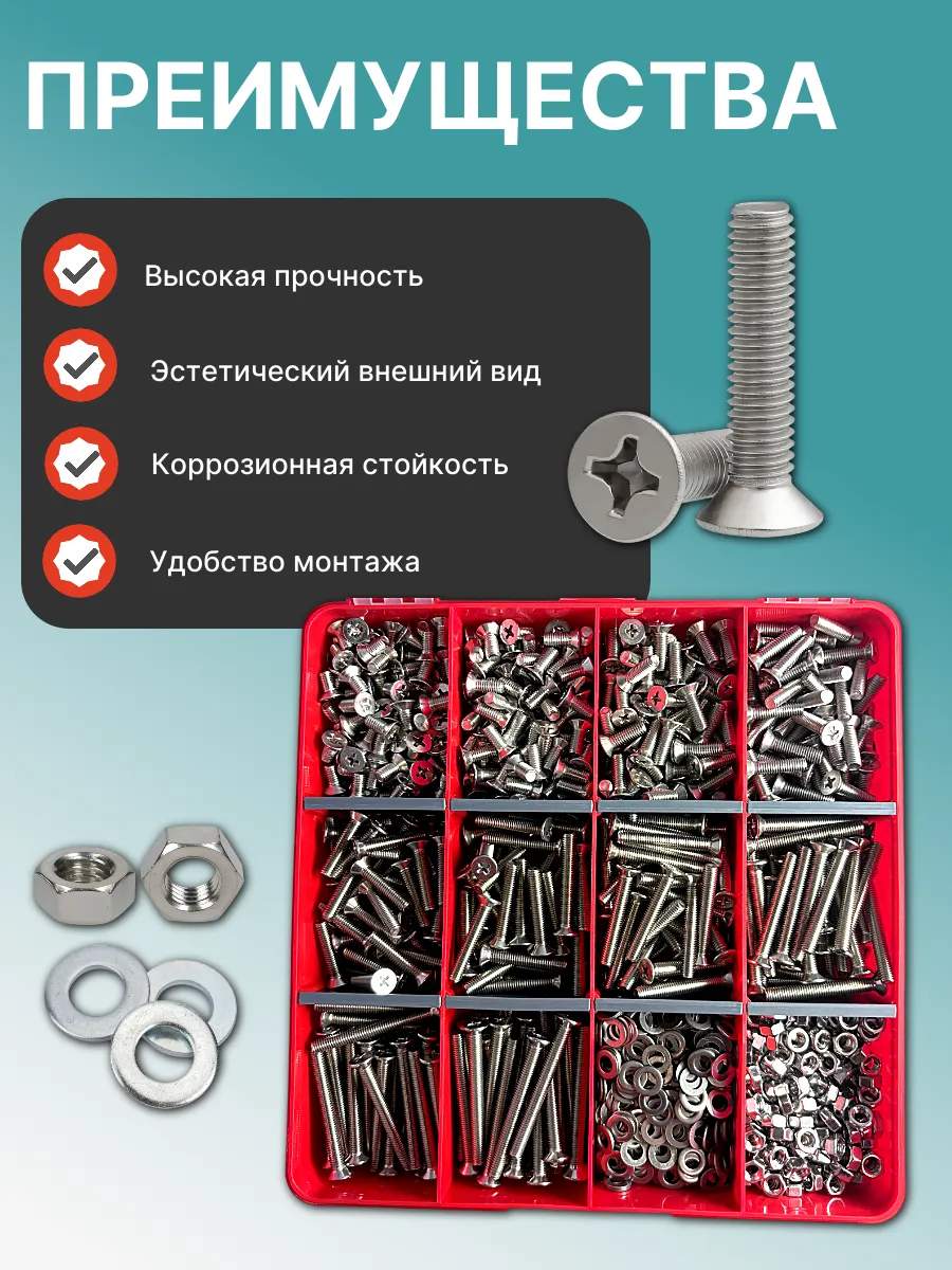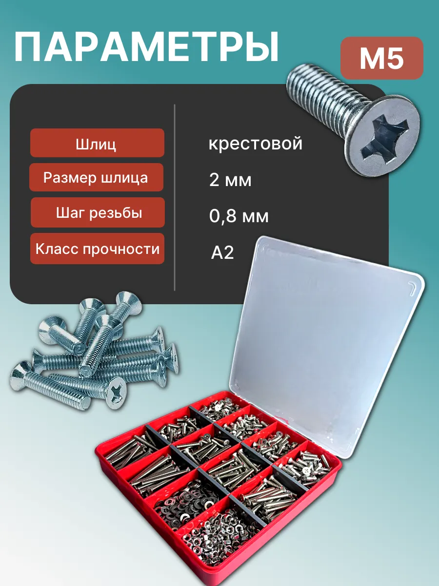 Винты нерж потай М5 DIN965 с гайкой,шайбой органайзер НАБОР3