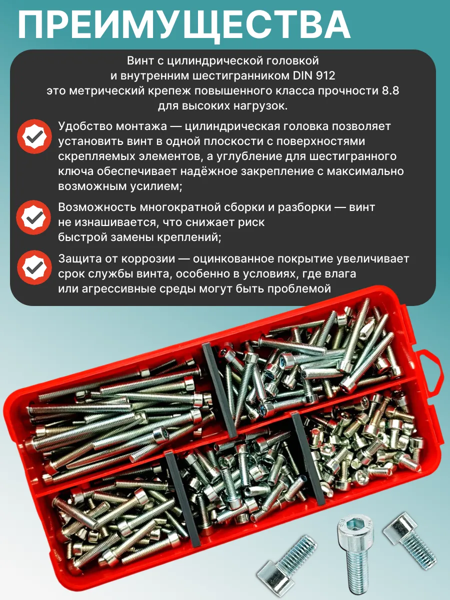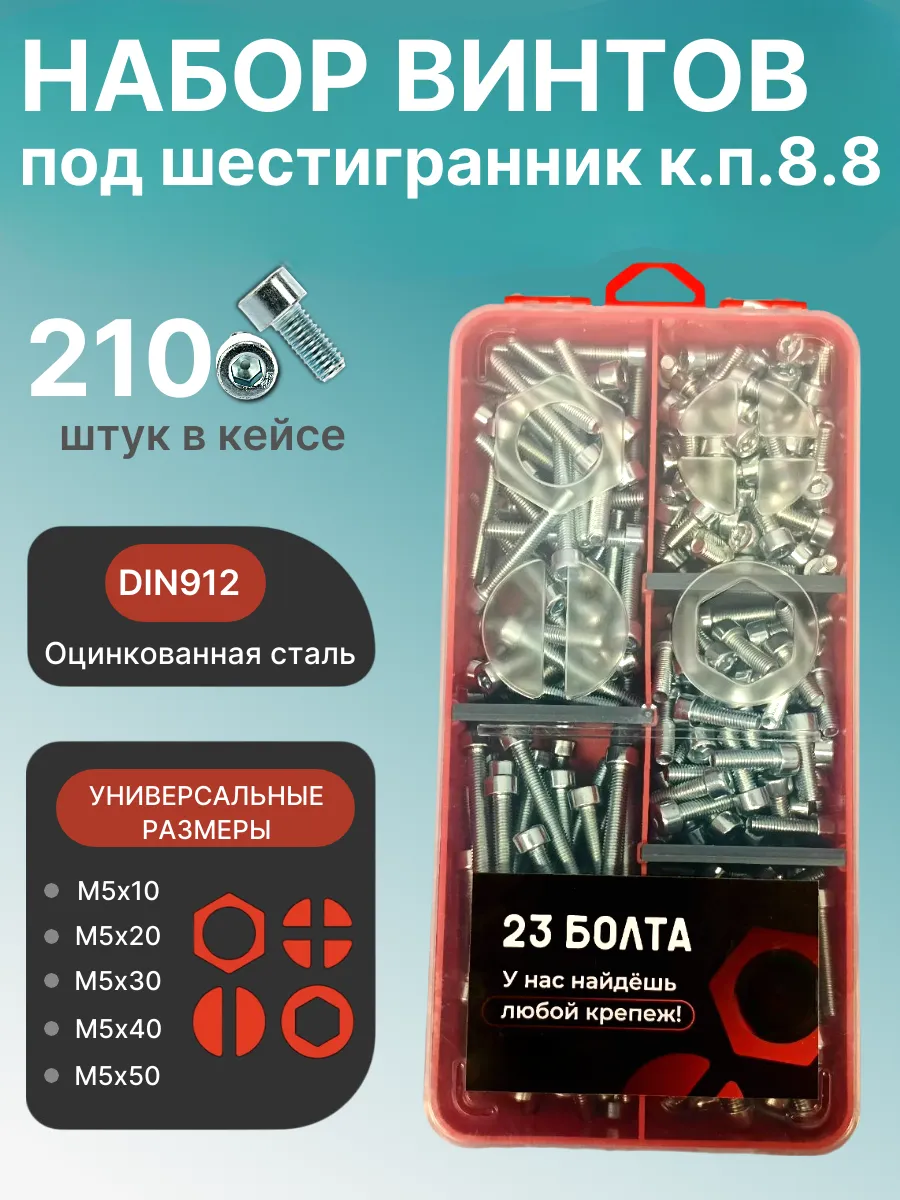Винты под шестигранник М5 ОЦ 8.8 DIN912 органайзер НАБОР 3