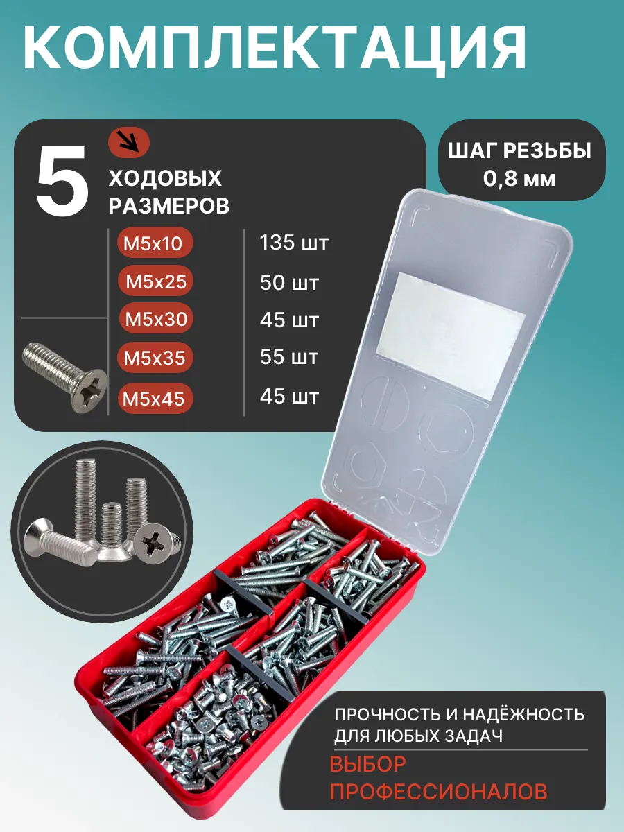 Винты потайные ОЦ М5 DIN 965 PH в органайзере НАБОР 1