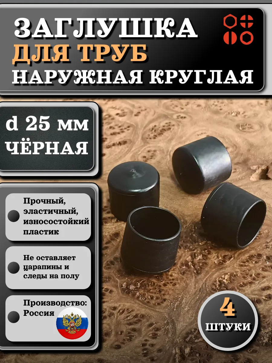 Заглушка для труб наружная круглая d 25 мм черная, 4 шт