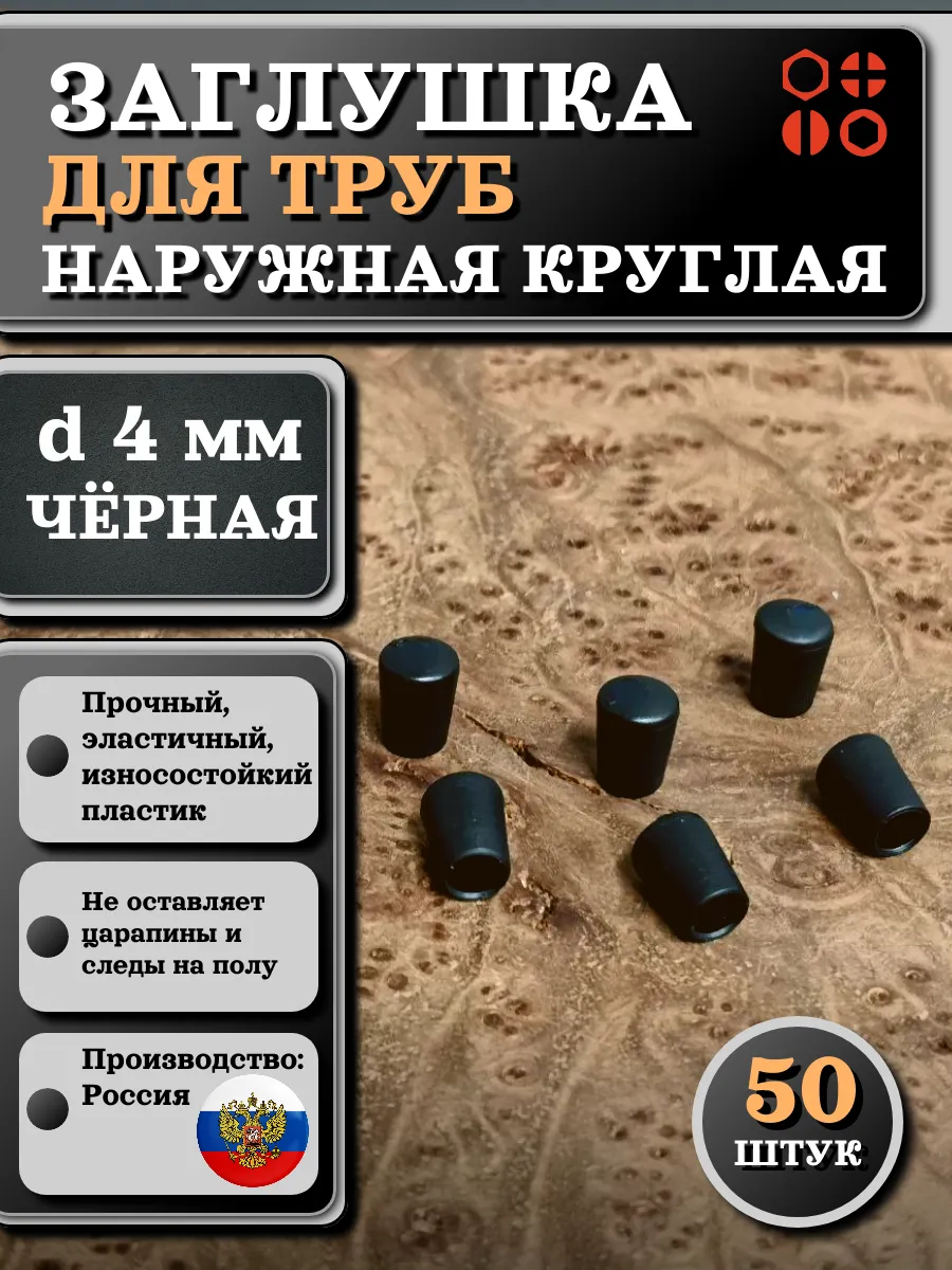 Заглушка для труб наружная круглая d 4 мм черная, 50 шт